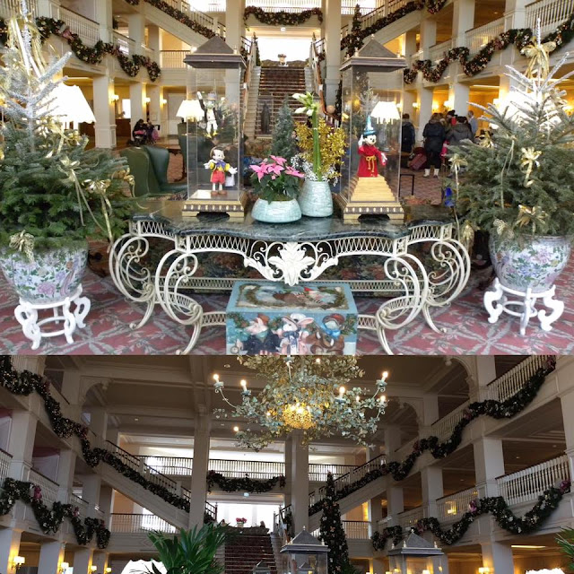 El hall del hotel, sin duda, el más bonito de todos los hoteles que forman el grupo de hoteles del conjunto Disney, es absolutamente sobrecogedor. Con una lampara, cuadros, decoraciones, la escalera que da acceso al primer piso, los sillones repartidos por diferentes espacios del hall, los muñecos dignos de coleccionista... Hay que visitarlo y recorrerlo con tranquilidad. Tomaos vuestro tiempo, es un rincón maravilloso.