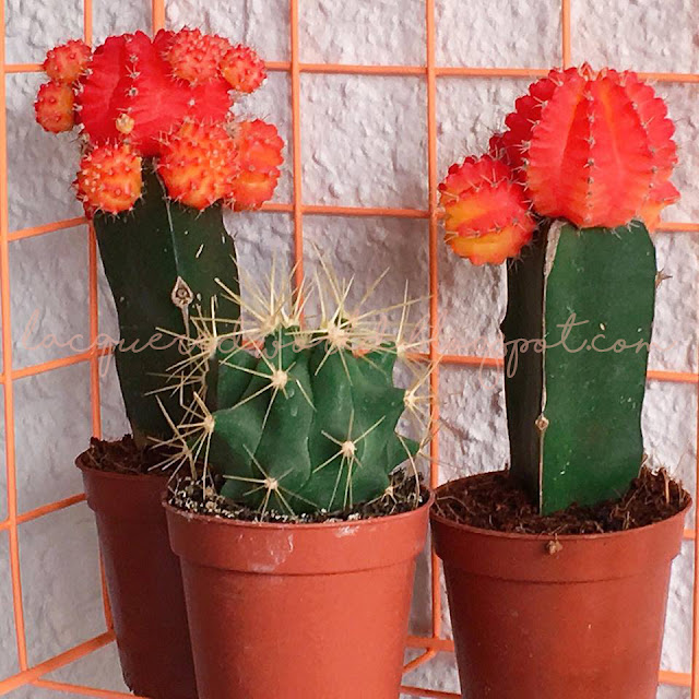 Hoy os muestro las fotos de los cactus, enfocandome más en ellos que en el resto. Próximamente, os enseñaré un post sobre como personalizar las macetas para que sea todo un conjunto y sea 100% nuestro propio rincón.